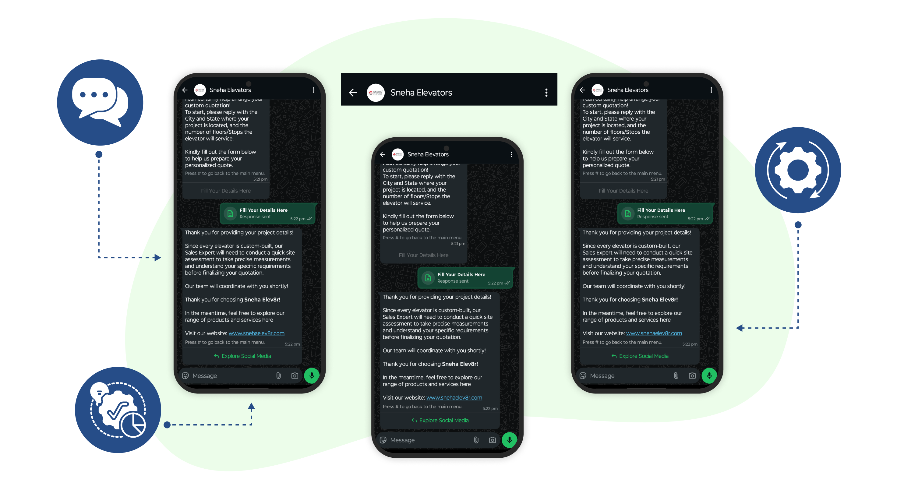 - Customers interact directly with Sneha Elevators on WhatsApp